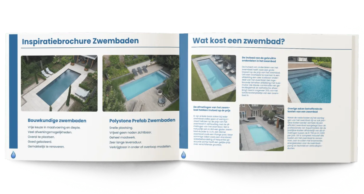 In onze inspiratiebrochure ontdek je onze verschillende soorten zwembaden, technieken, afdekkingen, prijzen en meer!
